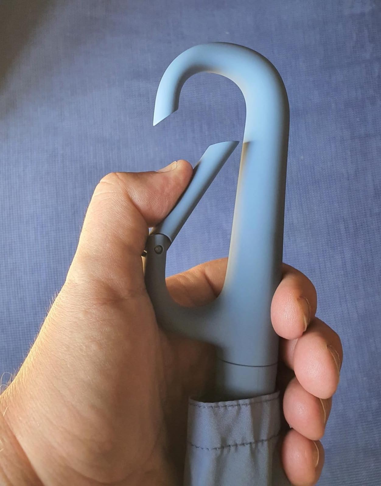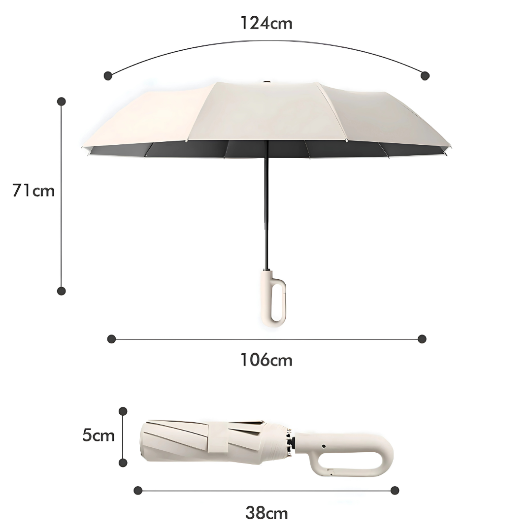 Nonostante le dimensioni ampie (106 cm di larghezza e 71 cm di altezza) quando aperto, l'ombrello si piega fino a soli 38 cm x 5 cm, rendendolo facilmente trasportabile. Il manico con moschettone ti consente di agganciarlo comodamente a qualsiasi zaino o borsa, perfetto per chi è sempre in movimento.